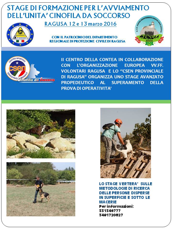 STAGE DI FORMAZIONE PER L’AVVIAMENTO DELL’UNITA’ CINOFILA DA SOCCORSO .